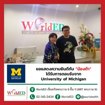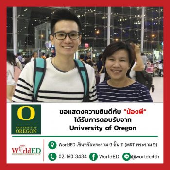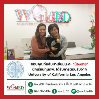 พี่ดี้และพี่ ๆ WorldED ขอแสดงความยินดีกับ “น้องต้า” ที่ได้รับการตอบรับเข้าเรียนปริญญาโท ...